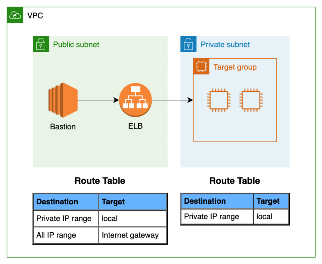 회사에서 업무를 하면서 개발 환경에서 머신러닝 모델 API에 응답 테스트를 해야할 일이 있었습니다. 개발 환경을 간략화 하면 다음과 같습니다. 같은 VPC 내부에 public ip를 가진 bastion과 public ip를 가진 ELB가 있습니다. 저는 bastion에서 ELB로 특정 형태의 request를 보냈고, 당연히 정상적인 응답이 돌아 올 것을 기대했습니다.